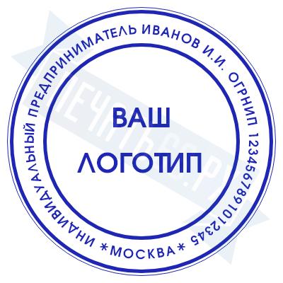 - Печать ИП с логотипом на металлической оснастке Сатурн-магнит кожа D42, 42мм по цене 2948 рублей и еще 68 видов печатей с логотипом